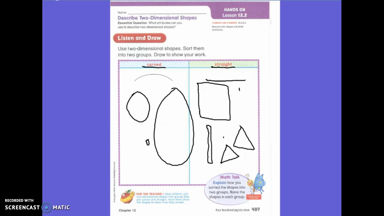 Sort two-dimensional shapes into two groups. Go Math is online. Distinguish between defining attributes eg triangles are.
